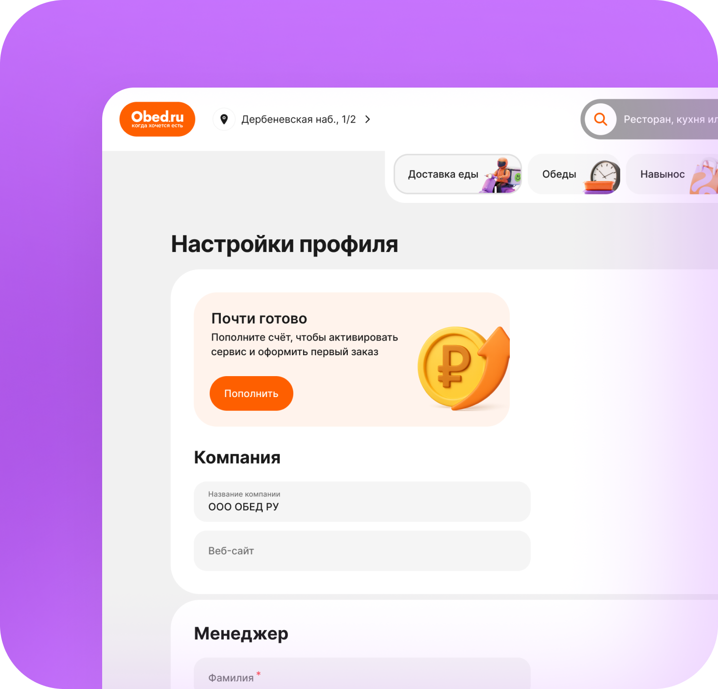 Обед.ру — сервис корпоративного питания для компаний. Но при желании можно